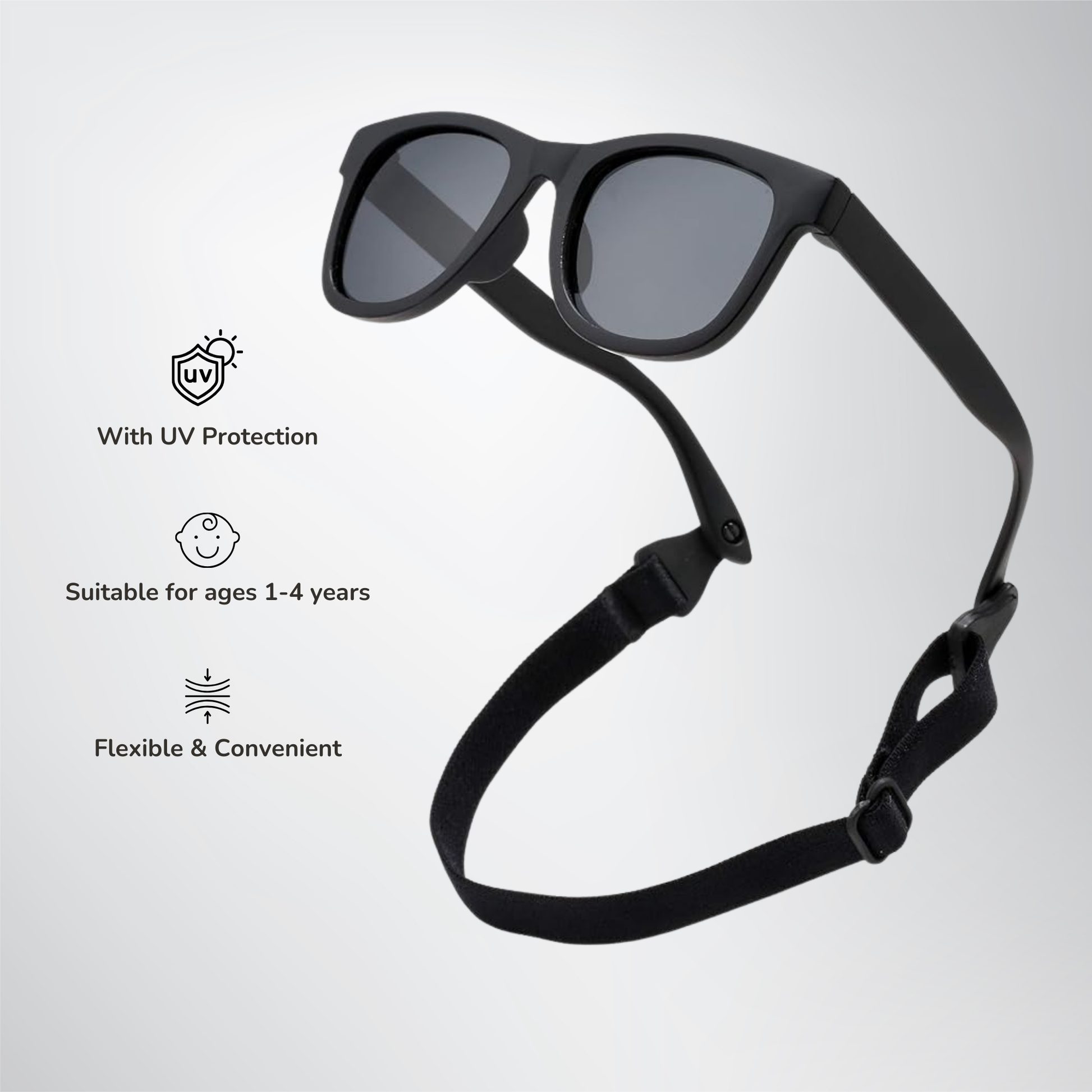 Crafted with a flexible frame, these sunglasses are built to withstand all the adventures your child embarks on. The adjustable and detachable band ensures a secure and customized fit, preventing the sunglasses from slipping or getting lost during playtime. Whether you're heading to the park, the beach, or just running errands, these stylish baby sunglasses are the perfect accessory to keep your little one looking adorable and feeling comfortable all day long.